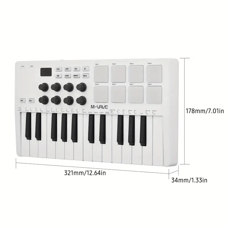 25-Key MIDI Control Keyboard Mini Portable USB Keyboard MIDI Controller with 25 Velocity Sensitive Keys 8 RGB Backlit Pads 8 Knobs