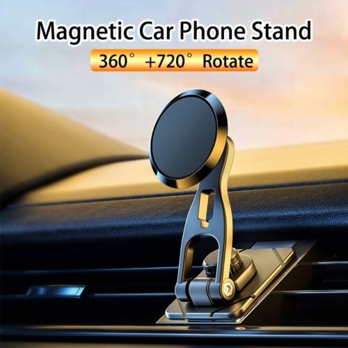 360° Rotation Magnetic Phone Holder Foldable Car Mount Stand Dashboard black