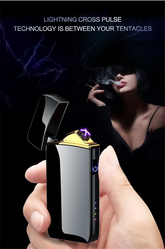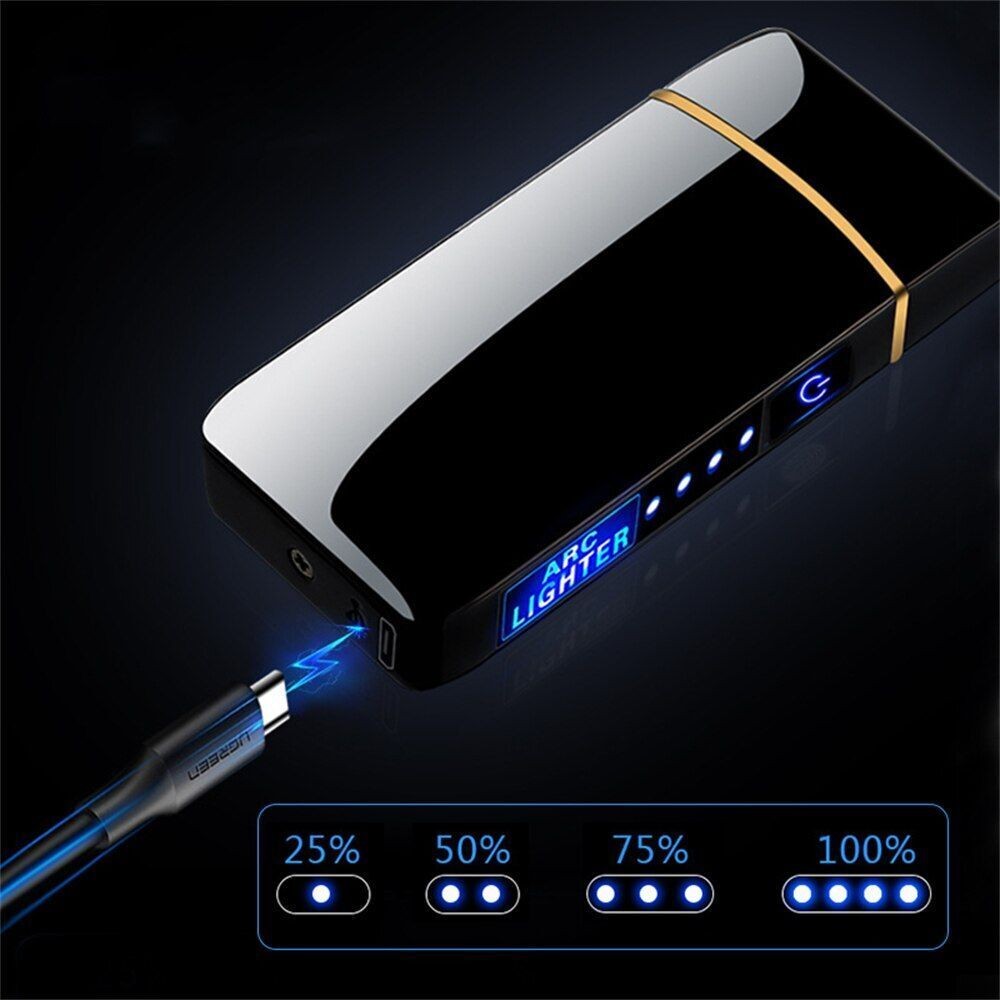 Electric Dual Arc Metal Cigarette Lighter USB Rechargeable Plasma Windproof