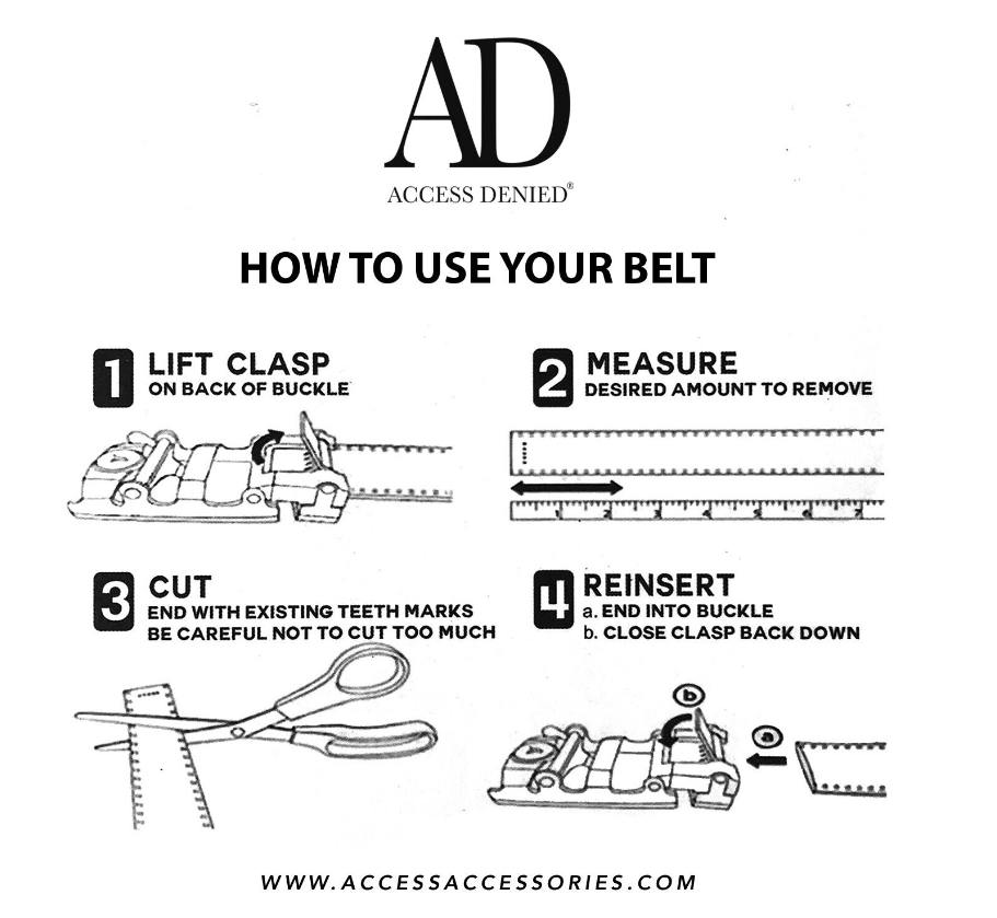 • This belt is designed to be cut to your waist. You need to open the clasp of the buckle, measure how much needs to be cut, and cut it. Once it is cut, you enter that side of the belt back into the buckle, close the clasp, and the belt will work perfectly.