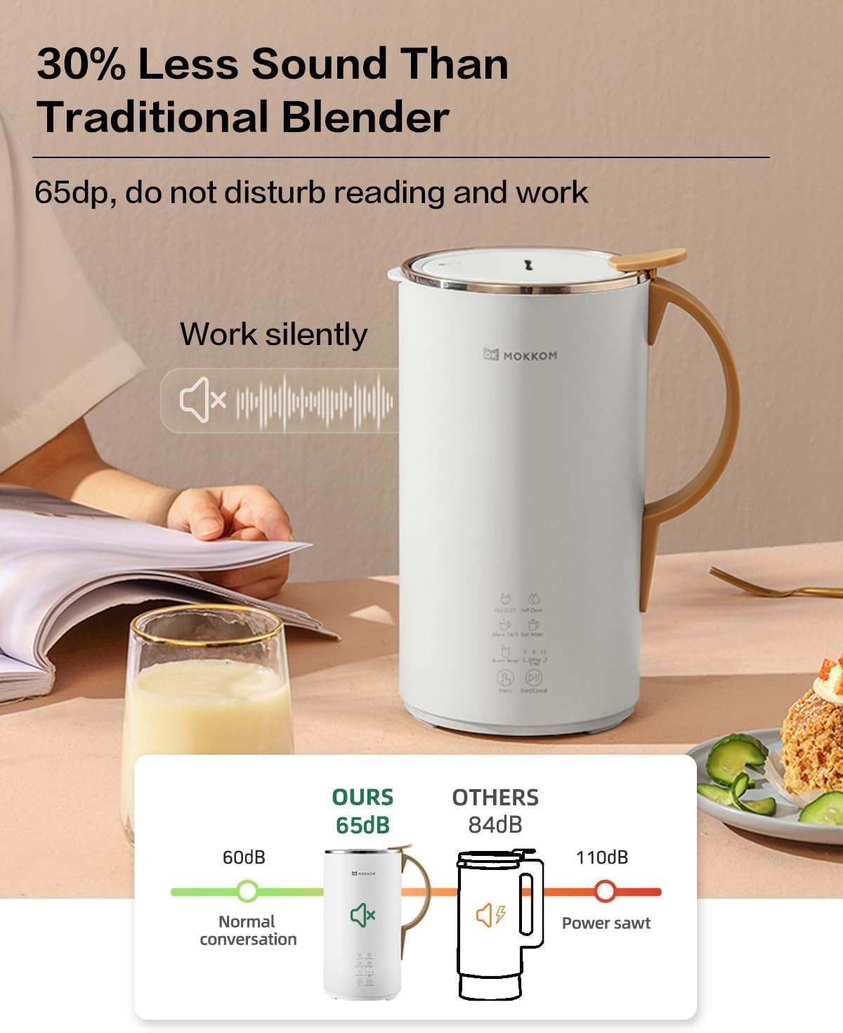 OK MOKKOM Automatic Nut Milk Maker 20 oz Soy Milk Maker, Homemade Almond, Oat, Coconut, Soy, or Plant-Based Milk Dairy Free Beverages, Almond Milk Maker with Delay Start/Boild Water/Self Clean - White
