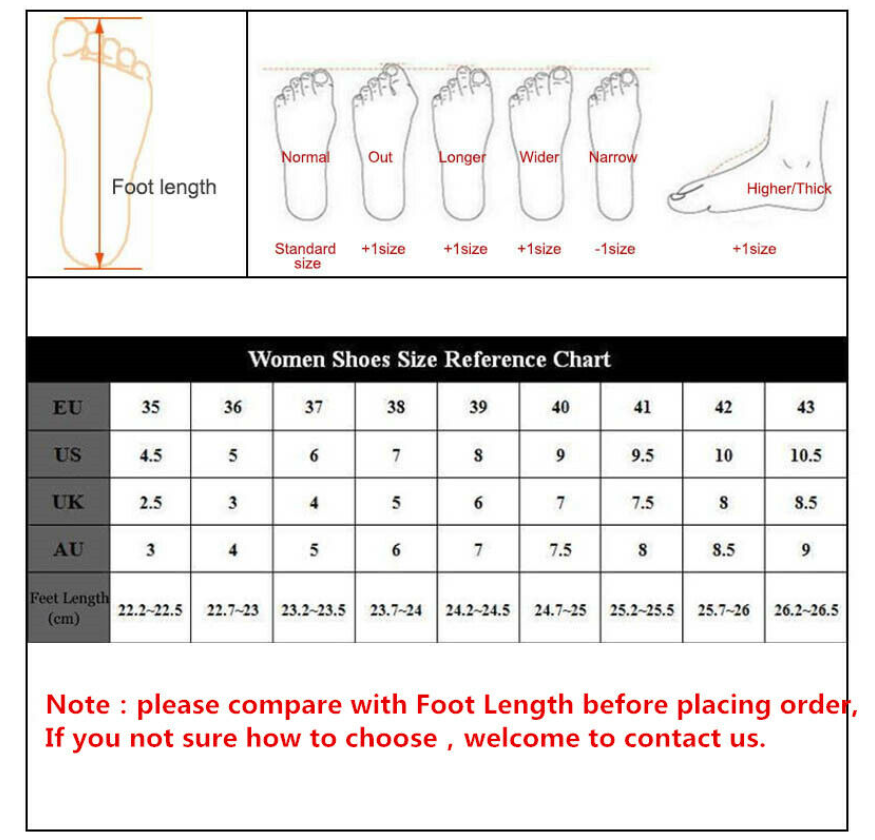 Please note:1.If your feet are wide, please order size up.