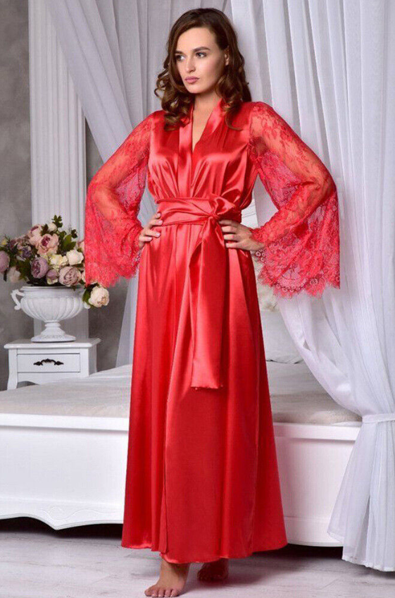 Sexy Robe Satin Lingerie Women Lace Dress Babydoll Nightgown Sleepwear pajamas