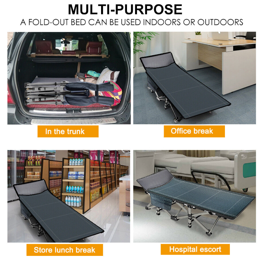 • ?【WIDE RANGE OF USES】:ABORON camping cot for adults is perfect for overnight hiking, trekking, hunting, road trip,home relaxing,or office break uses.A great companion to take to the Pool, Lake, RV, Campsite, Patio, Deck, Tent or Cabin.It can be used as a bed for your guest as well.Super convenient!!
