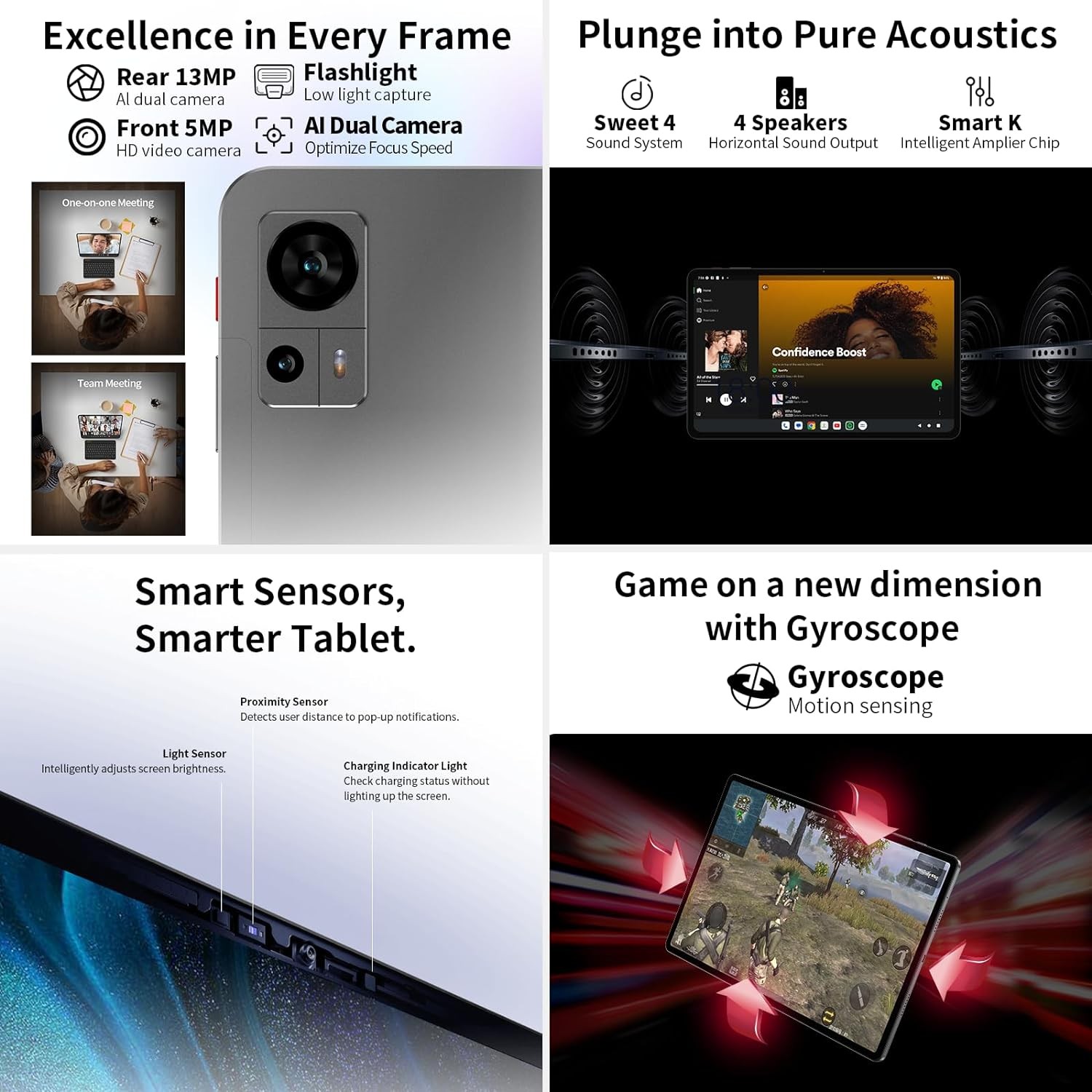 • 【2K IPS 12 inch Display + Widevine L1】Teclast T60 tablet with a 12 inch 2K display, providing a realistic visual experience with clear details. Using IPS Incell fully laminated display technology, the screen is clearer, richer in color, and also provides a wider viewing angle. Effectively filters harmful blue light, reduces eye fatigue and irritation, and protects your vision health. Additionally, T60 tablet supports Widevine L1. This allows you to smoothly watch copyrighted content such as high-quality HD content and streaming services on Prime video, DISNEP, Hulu, etc. It also supports wireless projection and can easily connect to a large TV