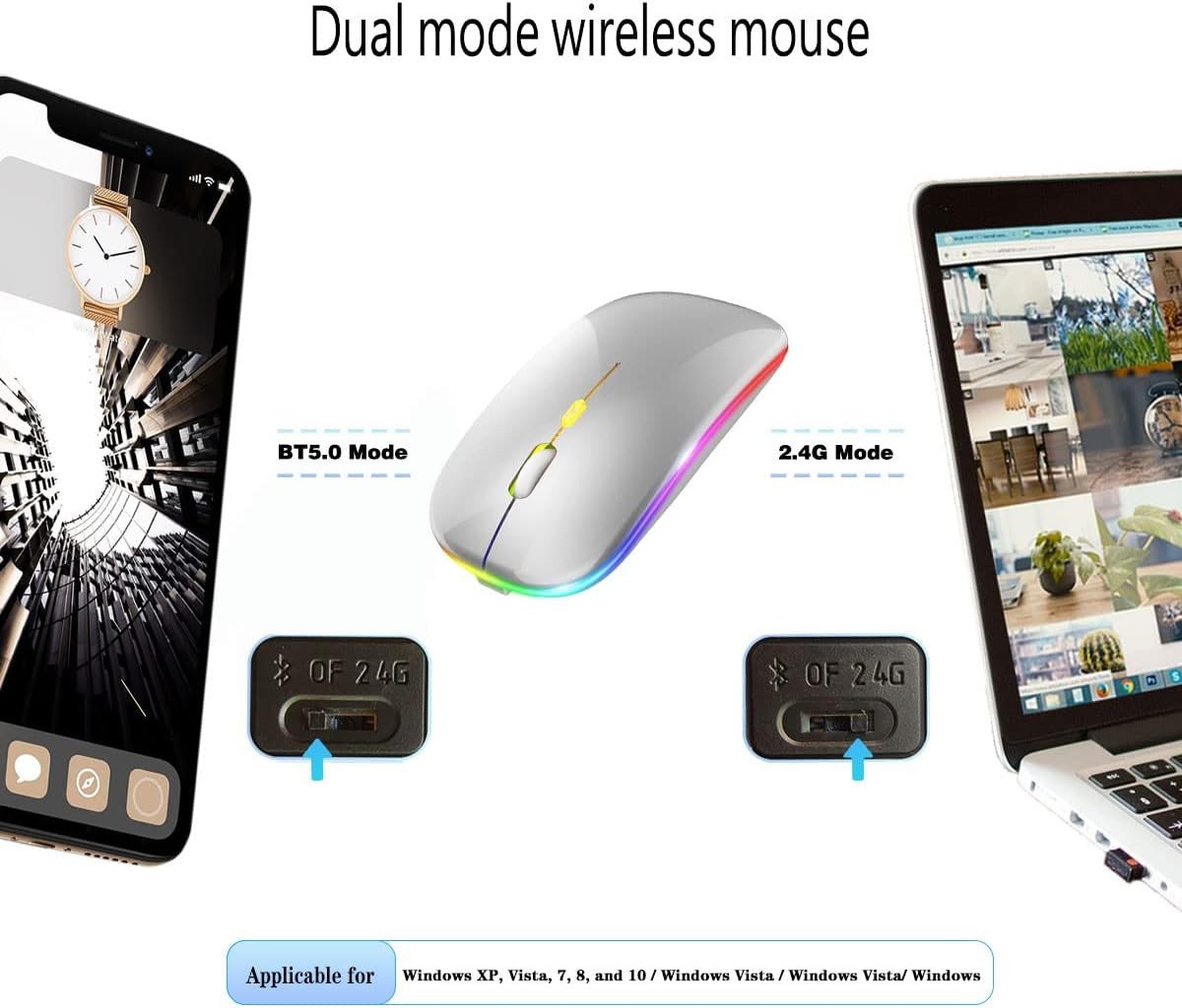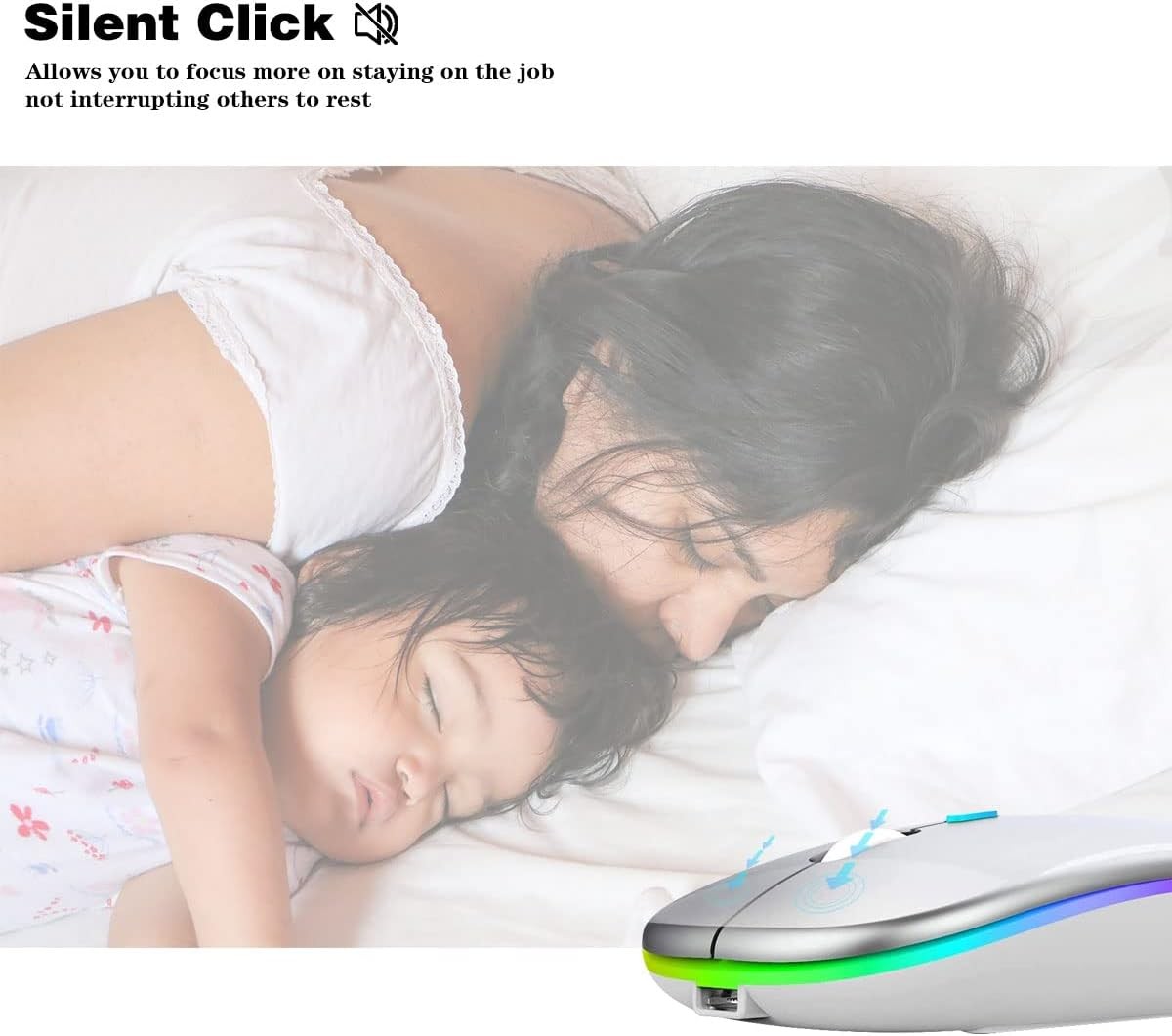 Wireless Bluetooth Mouse,LED Rechargeable Silent Slim Laptop Mouse,Portable(BT5.2+USB Receiver) Dual Mode Computer Mouse,for Apple Laptop,Desktop Computer,ipad Tablet,Phone,Mac.(Silver)