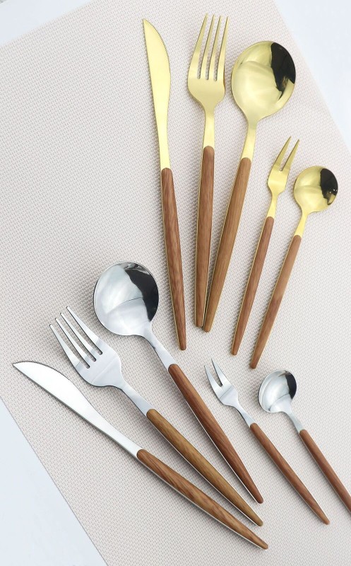 Wooden Handle Cutlery Stainless Steel Knife Fork Spoon Dinnerware Tableware Tool